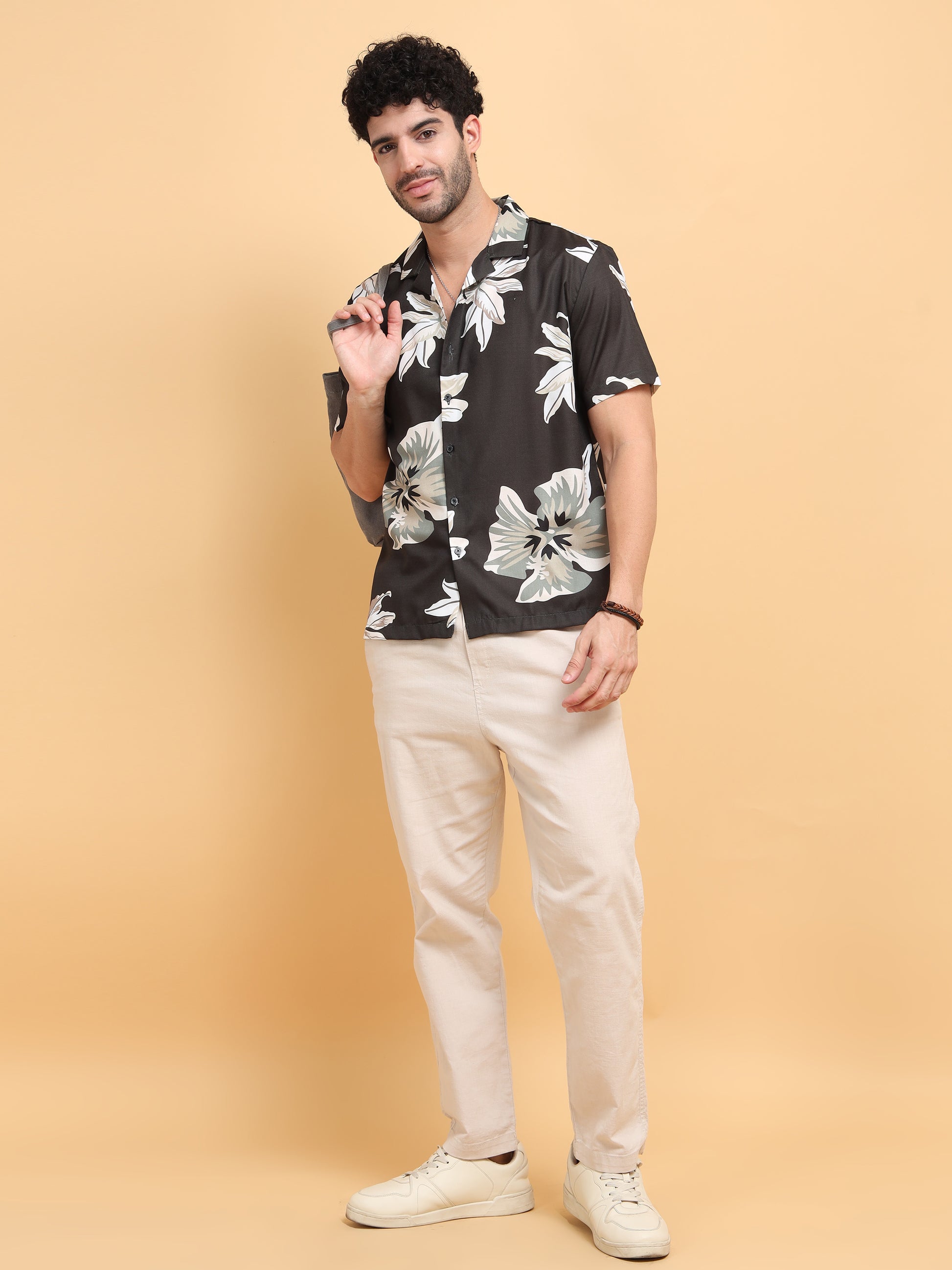 Embrace effortless vacation luxury with our Men’s Black Floral Resort Shirt. This standout piece features a sophisticated, all-over large-scale botanical lily print in muted sage and cream tones, creating a unique visual depth and a modern, high-fashion aesthetic. The relaxed Cuban collar (camp collar) and short-sleeve design offer a sophisticated "vacation-ready" vibe that is perfect for summer brunches, beach weddings, or premium resort wear.